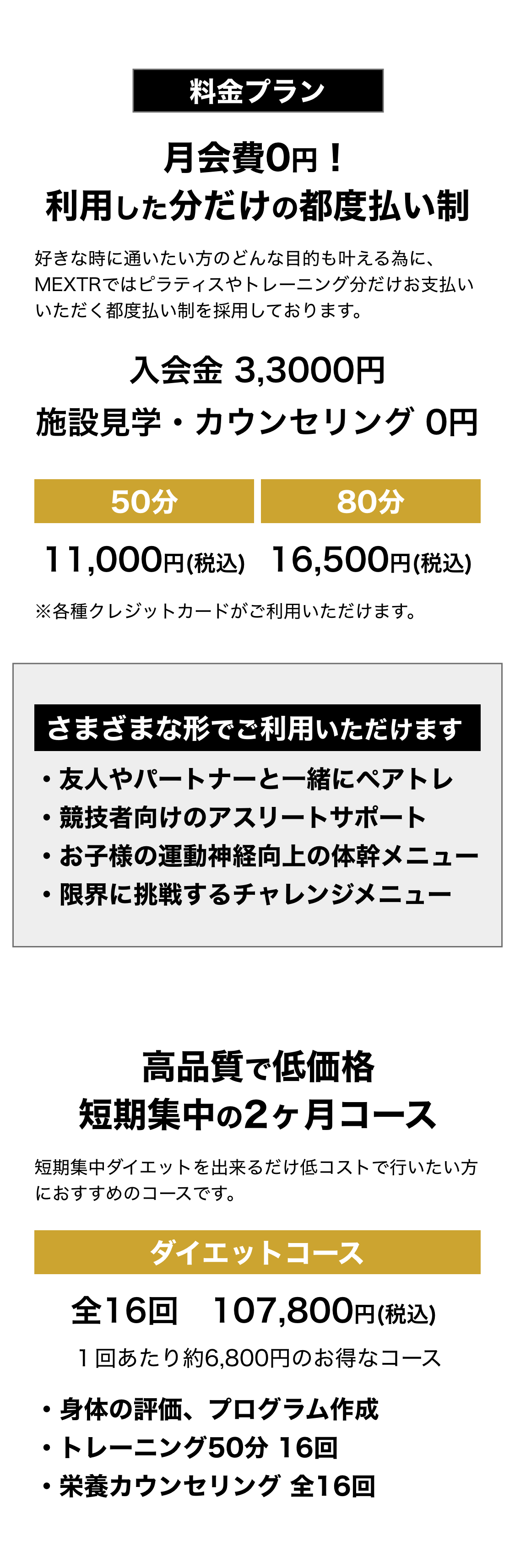 ご希望コース 希望コースを選択するパーソナルトレーニングピラティス